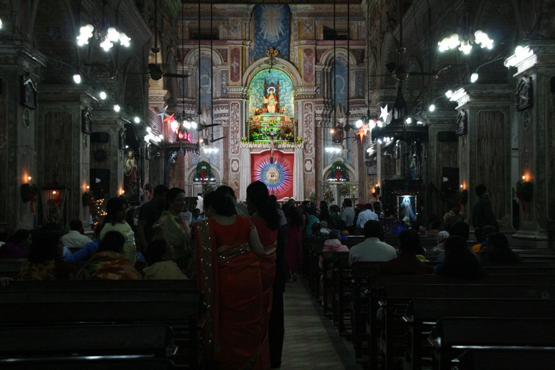 Brunève a repéré la messe de minuit locale. On décide d’y aller pour voir à quoi cela peut bien ressembler. L’église est pourvue de nombreux ventilateurs qui permettent de rendre la température supportable. Question cérémonie, c’est quasiment la même chose qu’en France. Les Indiens sont très pieux et l’on assiste à de nombreuses génuflexions durant les prières. Jeff fait une tête de plus que l’ensemble de l’église. Brunève est dans la moyenne.