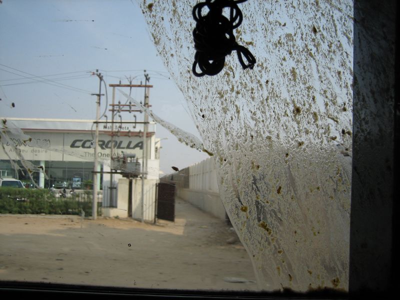La scène se déroule dans le bus en direction de Jaisalmer. Précision importante : il s’agit d’un bus deluxe à 2 niveaux avec des couchettes en haut. Nous sommes au niveau inférieur. Dans la couchette au dessus se trouvent un père et ses deux enfants. Un des trois a le mal des transports et commence à vomir par la fenêtre du haut sans prévenir personne, et repeint tout le flanc gauche du bus.