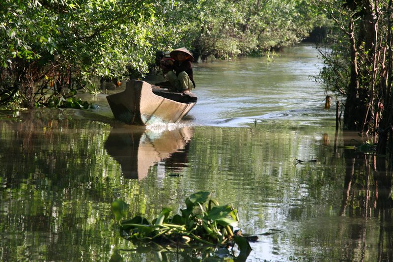 Nous avons choisi de prendre le chemin des écoliers pour rallier Phnom Penh au Cambodge. Au lieu de prendre un bus direct entre les deux villes, nous avons fait un petit crochet pour pouvoir explorer le delta du Mékong.