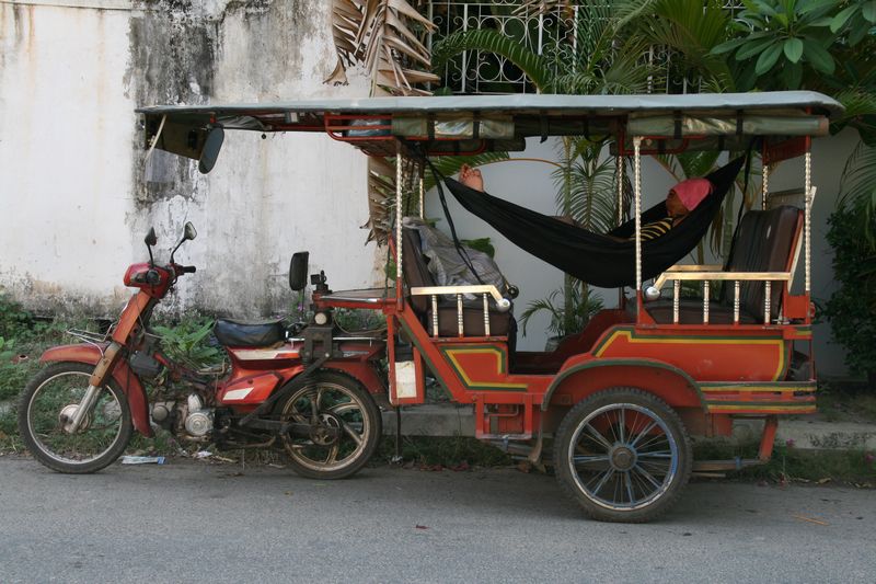 Petite sieste d’un chauffeur dans un “tuk-tuk” !