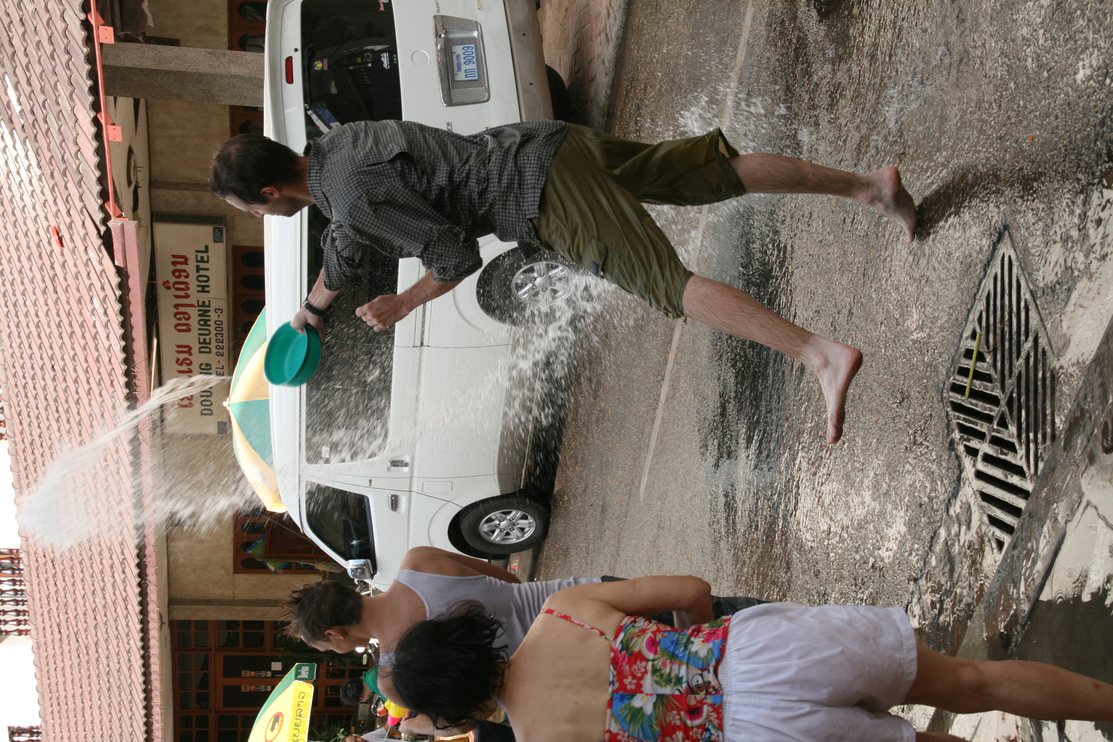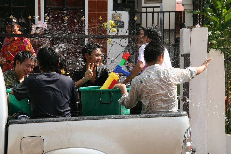 En arrivant à la “guesthouse”, nous pouvons assouvir notre soif de vengeance, l’équipe de l’hôtel fournissant eau et seaux pour arroser tous ceux qui passent dans la rue.