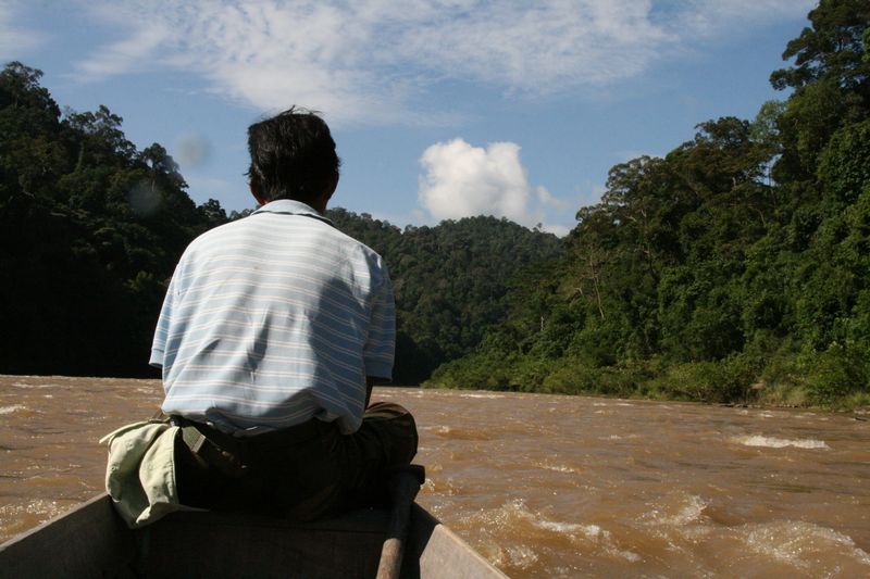 Ayant déjà expérimenté au Laos une plantation de café infestée de sangsues, nous sentons moyen le fait de faire 7 heures de marche dans ces conditions. Nous trichons et décidons de faire une grosse partie en pirogue. Il reste cependant une heure de marche en pleine jungle pour arriver au refuge.