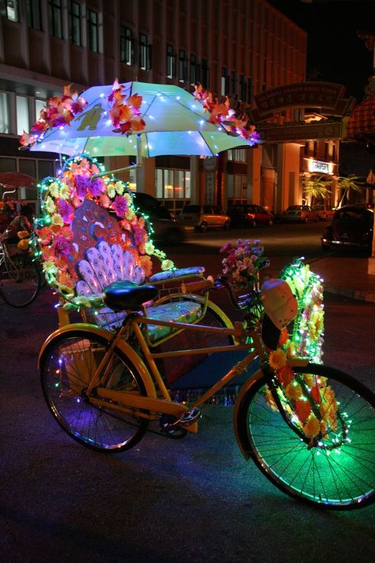 Les cyclo-pousses de Melaka constituent une attraction à part entière :mrgreen: . Ils sont tous décorés de façon loufoque, ont des guirlandes lumineuses la nuit ainsi qu’une sono qui permet de les repérer à 100 mètres.