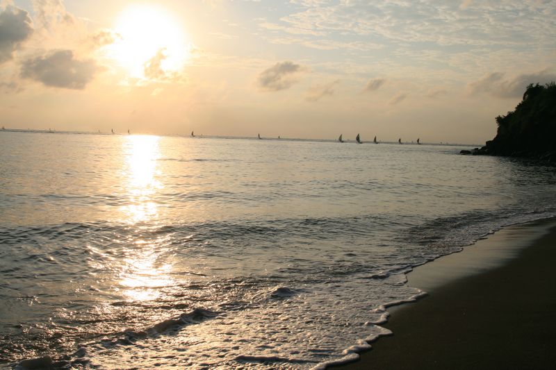 Le lendemain matin, nous assistons au retour des pêcheurs à 7h. Le spectacle est saisissant : l’horizon est découpé par une armada de pirogues toutes voiles dehors qui font cap vers les différents villages côtiers.