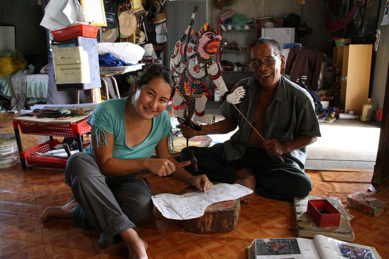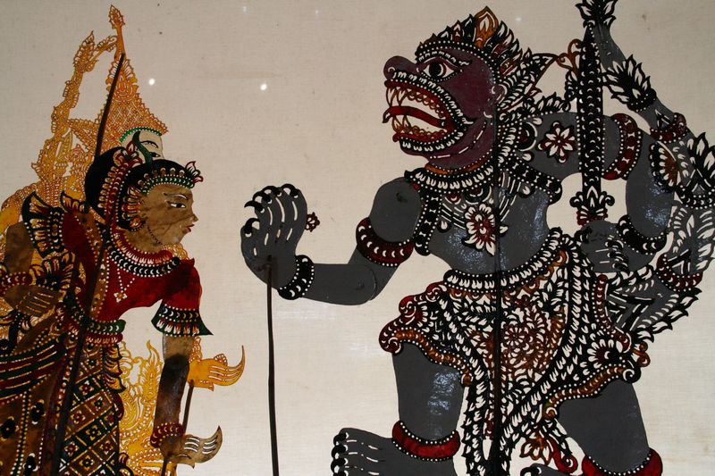Nous avons rendu visite à l’atelier de Yusoff qui fabrique les marionnettes et les manipule lors des spectacles. Dommage pour nous : pas de représentation prévue ce jour-là. Durant le spectacle, il n’y a qu’un seul marionnettiste jouant à lui seul tous les personnages, et de nombreux musiciens l’accompagnant.