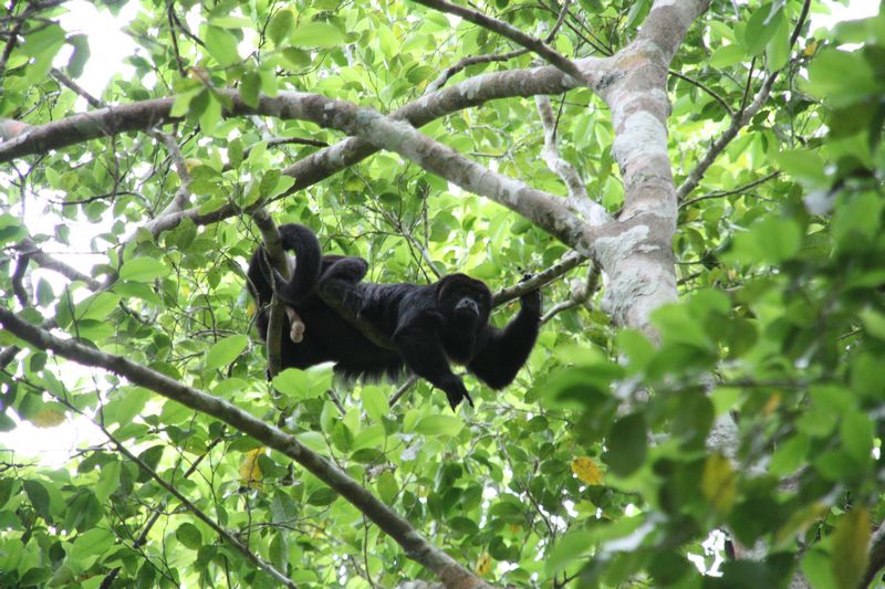 Au bout d’un moment, nous finissons par repérer des singes hurleurs. Vu les cris, nous nous attendions au minimum à des gorilles ! Mais ils ne sont pas si impressionnants que cela au final. Nous croisons aussi quelques oiseaux multicolores ainsi que des coatis, petits mammifères ressemblant un peu à des ratons laveurs.