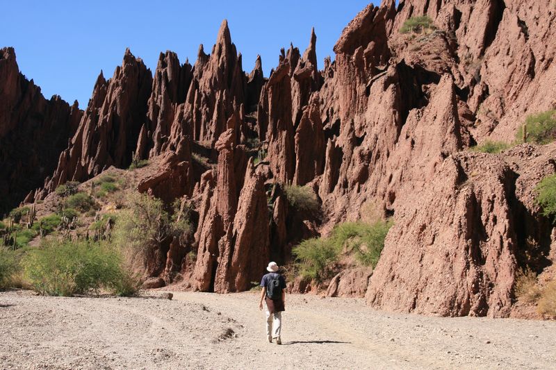 C’est ainsi que nous partons sur le coup de onze heures du matin explorer les quebradas locales (vallées encaissées). Le décor fait très far-west: un mélange de cactus et de canyons rouges orangés. On se croirait dans l’ouest des Etats-Unis. C’est d’ailleurs ici, à San Vicente, petit village près de Tupiza que la légende de Butch Cassidy et le Kid s’arrête, tués par la police après un dernier braquage.